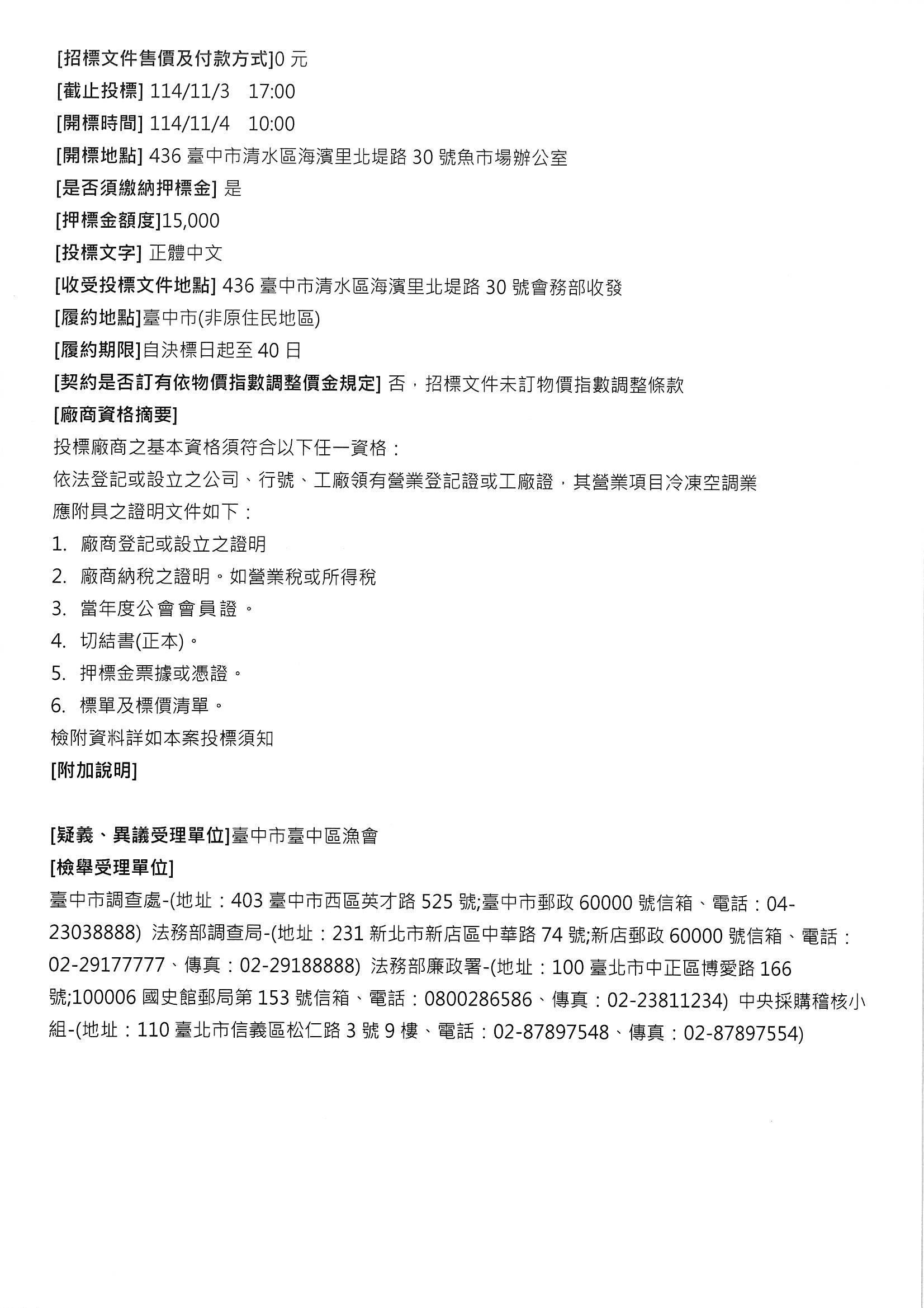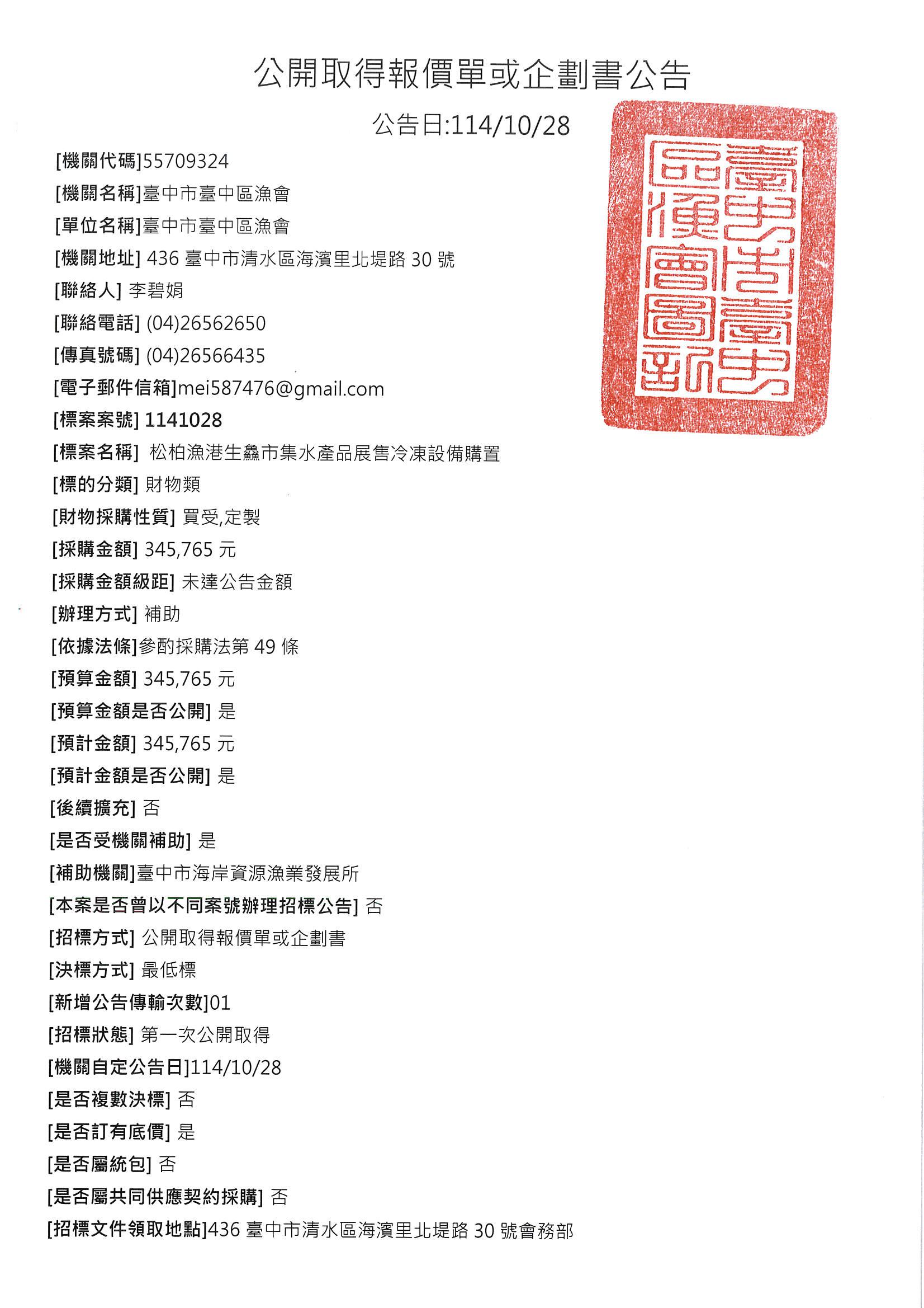 松柏漁港生鱻市集水產品展售冷凍設備購置公開取得報價單或企劃書公告